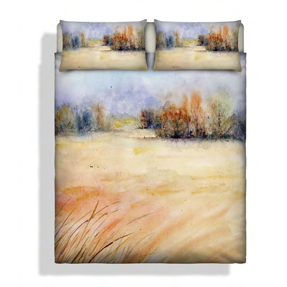 Bettbezug mit Aufdruck auf der Doppeltasche und den Kissenbezügen