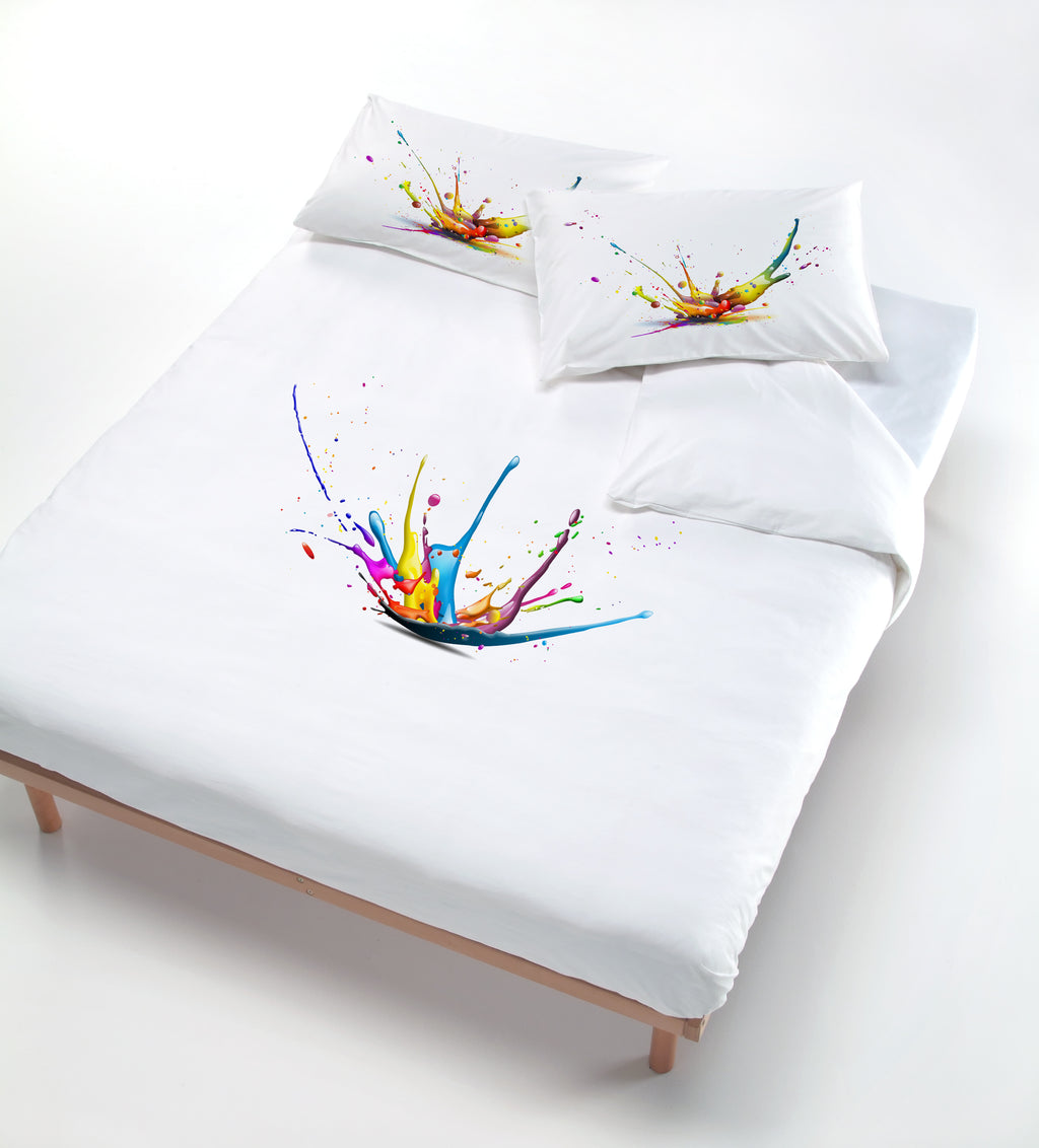 Bettbezug mit Aufdruck auf der Tasche und Farbskizzen-Kissenbezüge