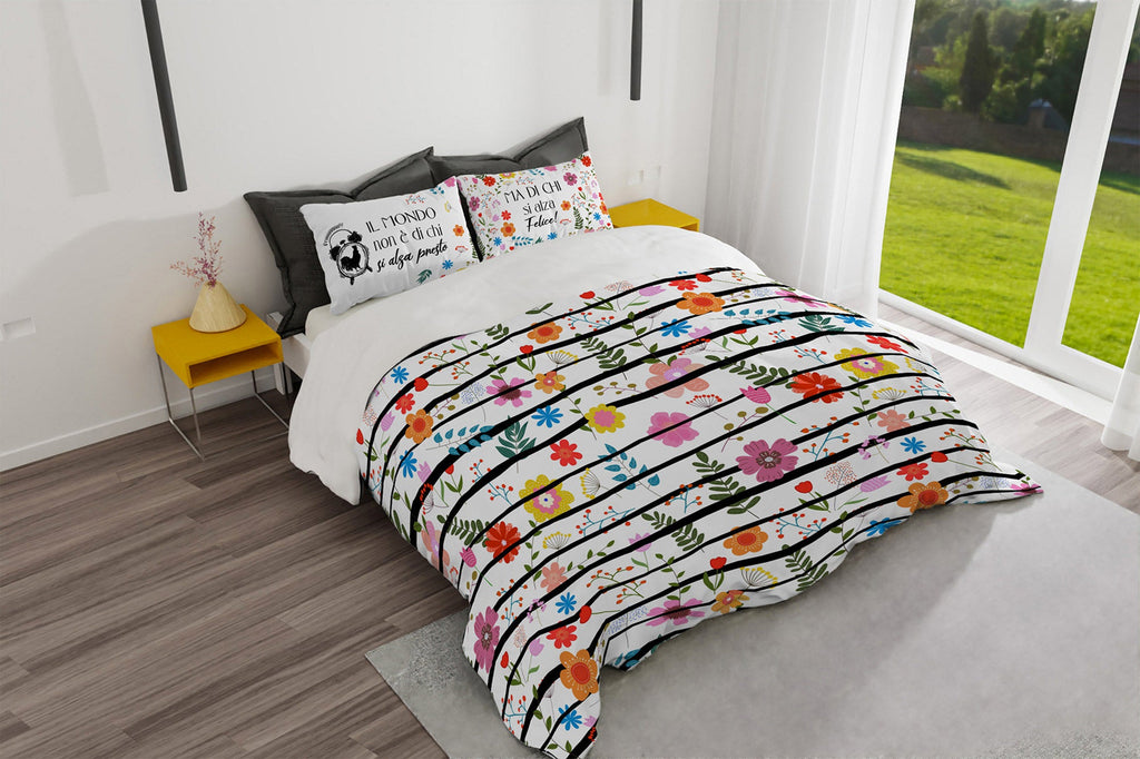 Shine Bettbezug-Set mit Digitaldruck. Artikel mit Bettbezug und Kissenbezügen aus 100 % Baumwolle, mit leuchtenden und einfarbigen Farben beim Waschen. Artikel hergestellt in Italien.