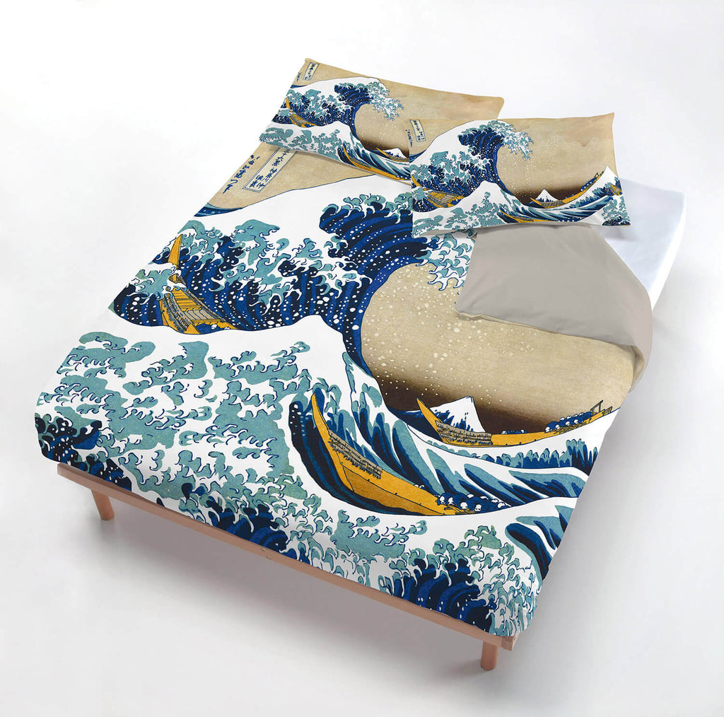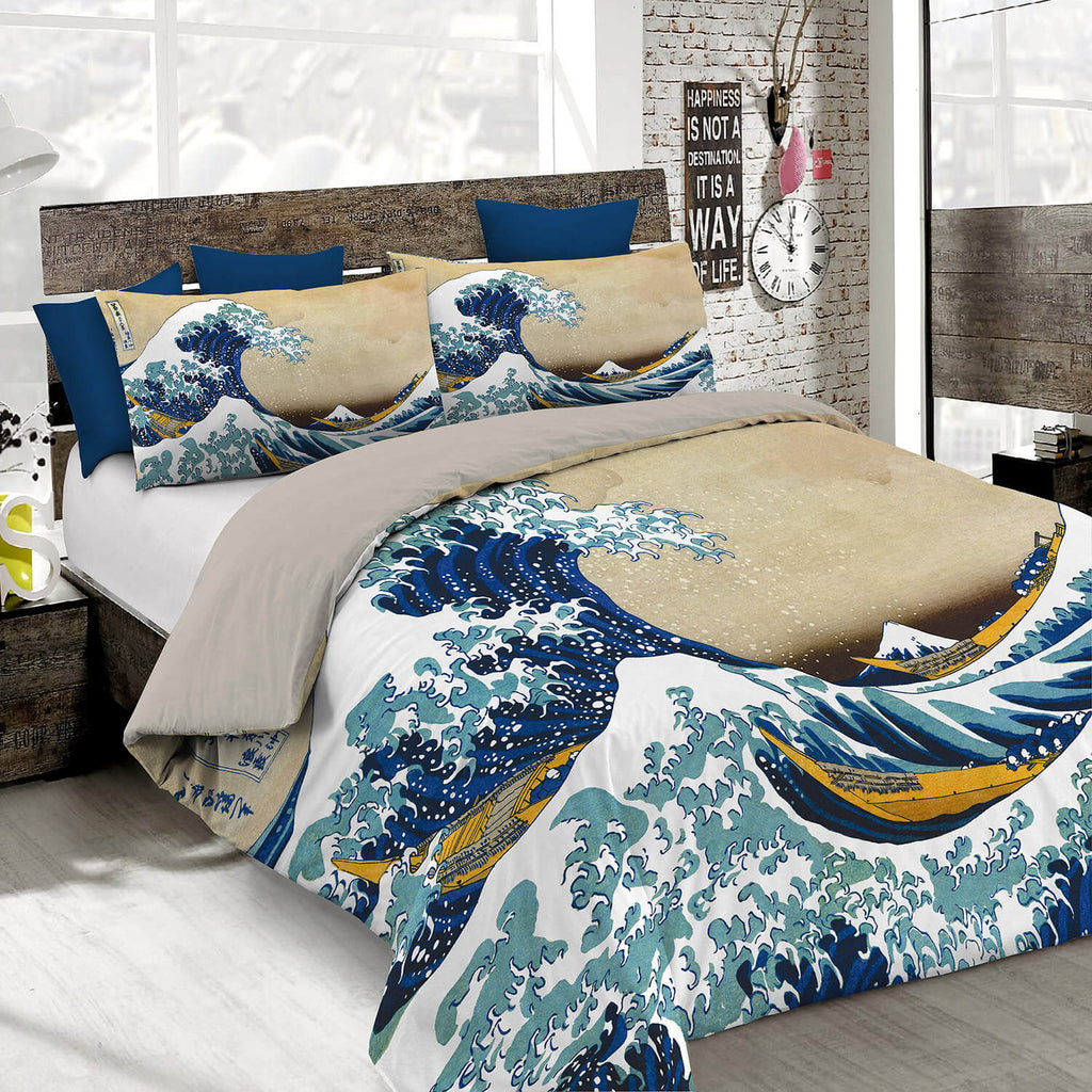 Art-Bettbezug-Set mit vollflächigem Digitaldruck. Artikel wird mit Bettbezug und Kissenbezügen aus Mikrofaser in leuchtenden Farben geliefert, die waschbeständig sind. Hergestellt in Italien.