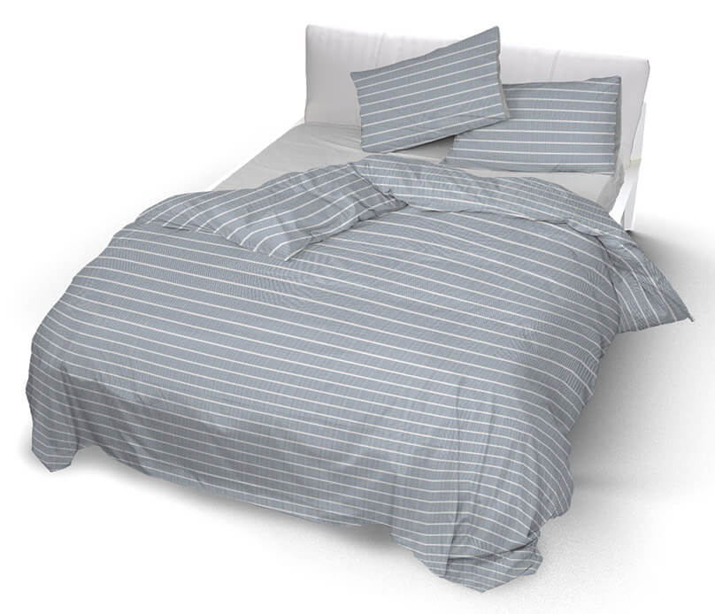 Doppelbettbezug mit Kissenbezügen, bedruckt in reiner Baumwolle Division Blue