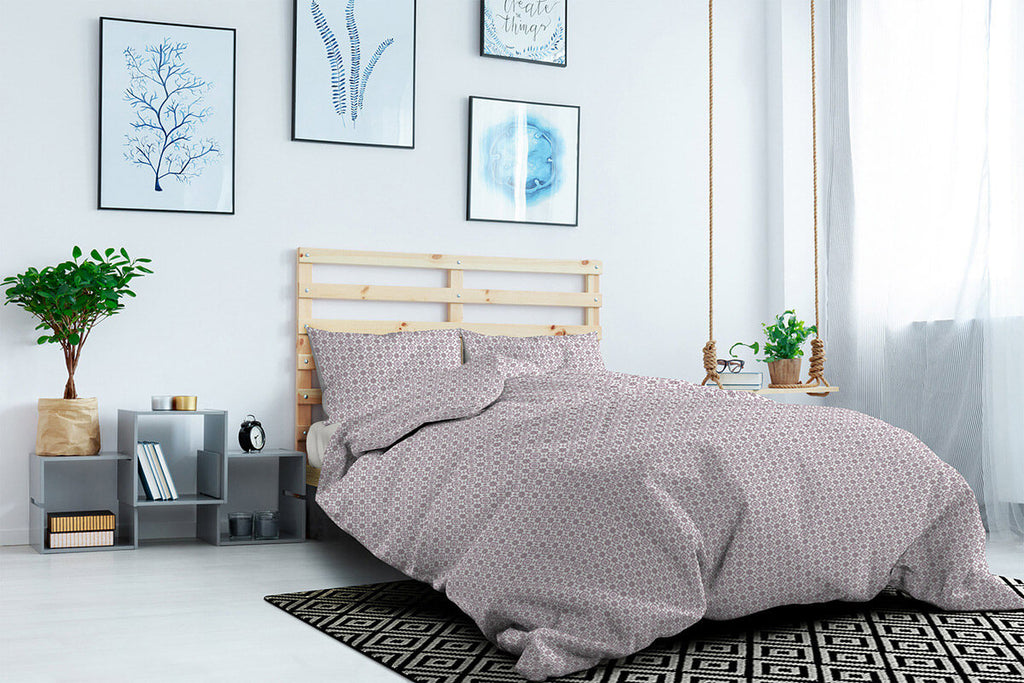 Doppelter Bettbezug mit Kissenbezügen, bedruckt in reiner Baumwolle in Floyd Pink