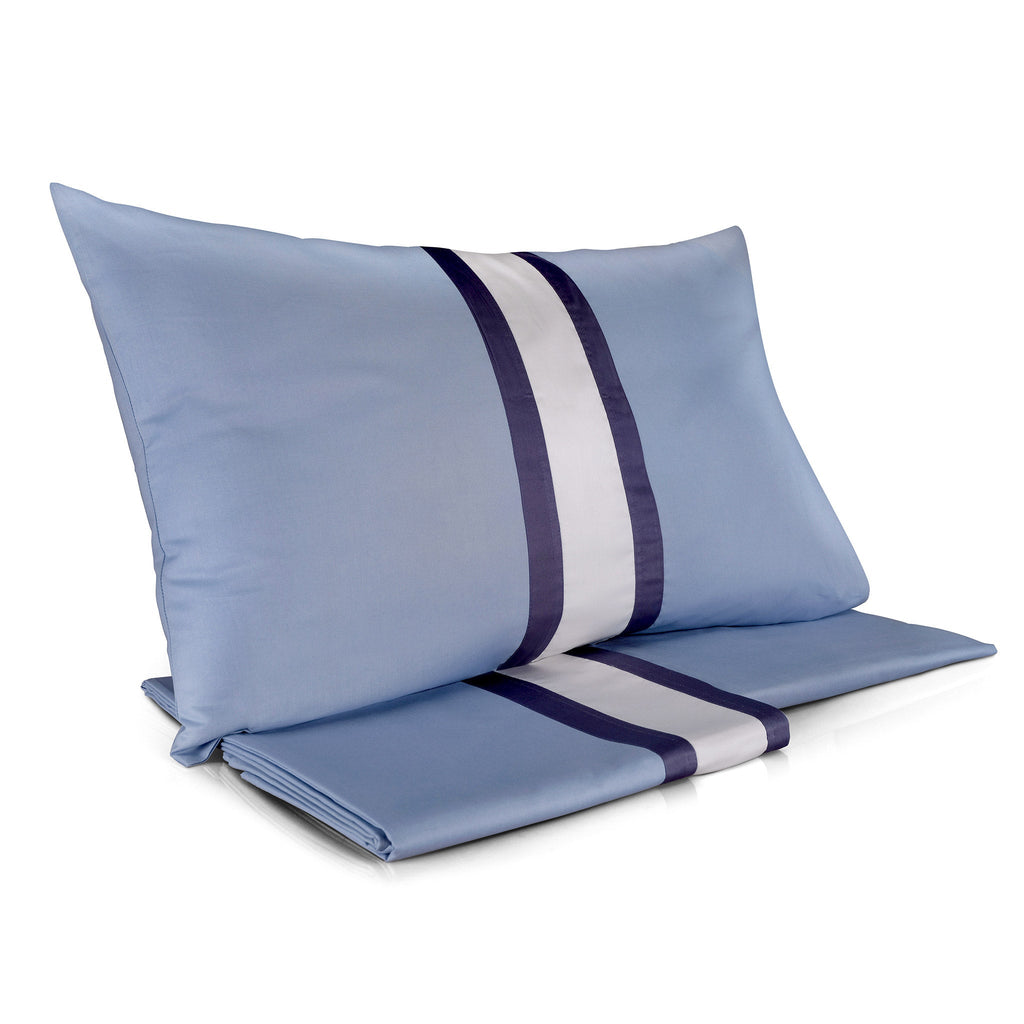 Von der eleganten Farbe, die die Brillanz der sehr feinen Satinapplikation verstärkt, die einen eleganten Kontrast zur Baumwolle für ein Bett mit einem modernen und niemals banalen Geschmack bildet.