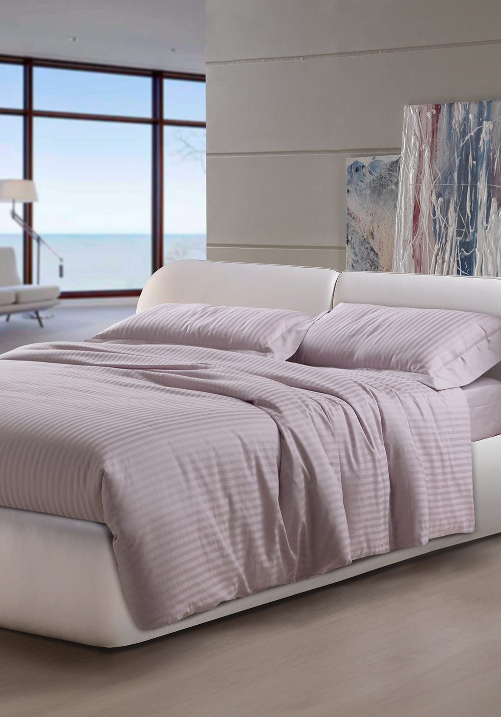 - Stoff: Reine gestreifte Baumwolle, 300 Fäden