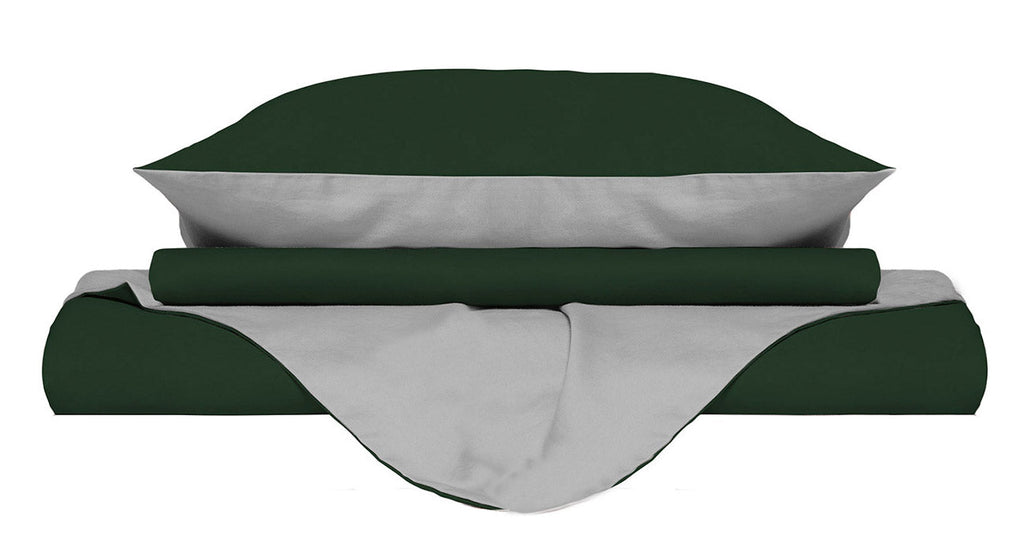 Copripiumino Matrimoniale con Sacco e Federe Tinta Unita Double Face Verde Oliva/Grigio Chiaro