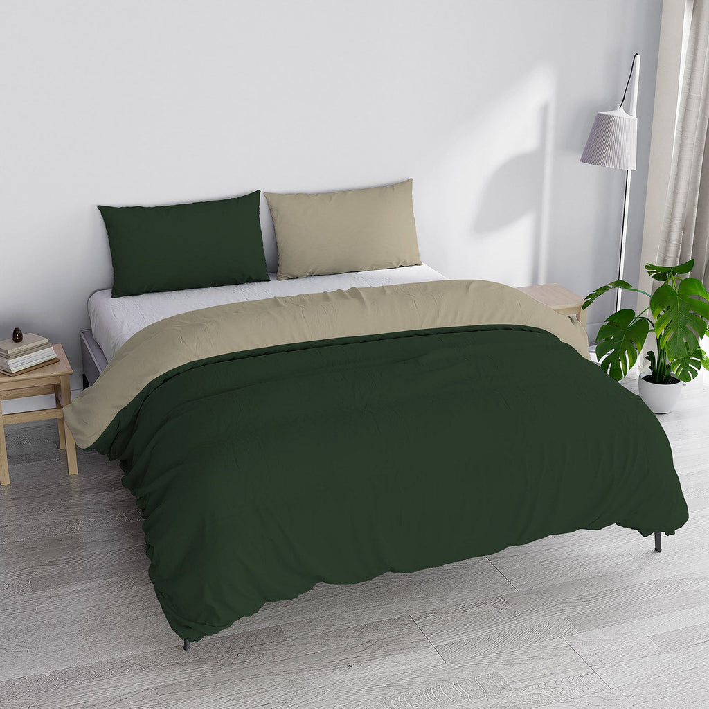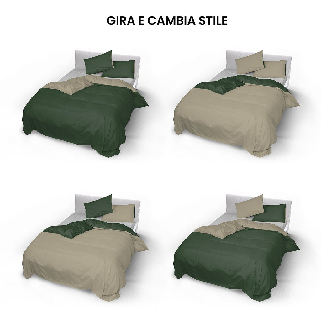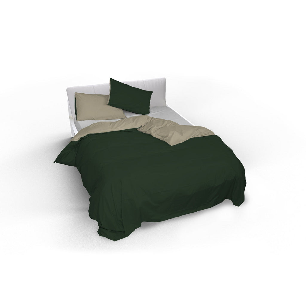 Copripiumino Matrimoniale con Sacco e Federe Tinta Unita Double Face Verde Oliva/Tortora