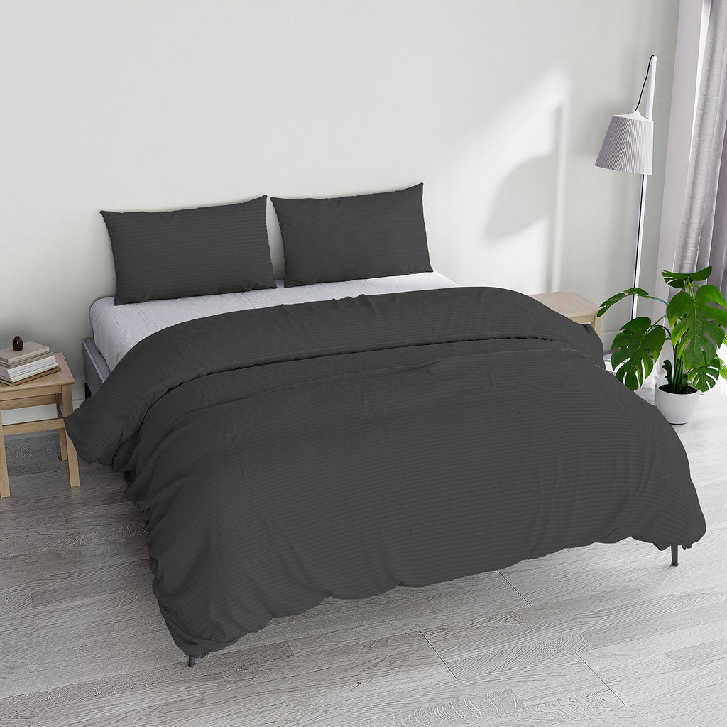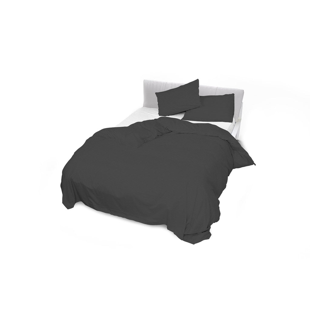 Doppelbettbezug mit Tasche und Kissenbezügen aus schwarzem Polyestersatin