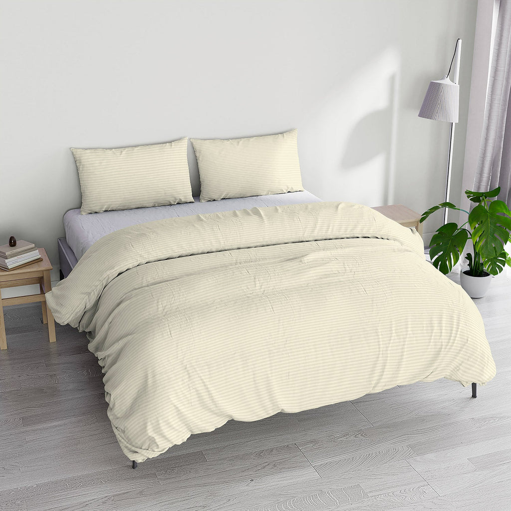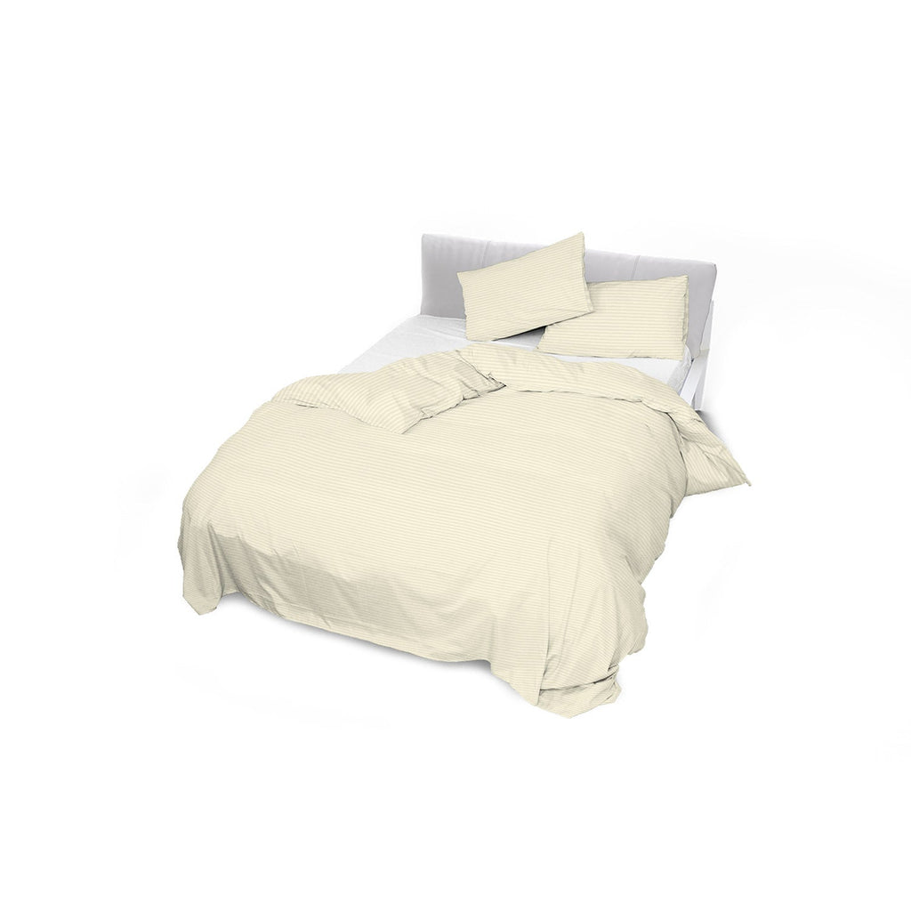 Doppelter Bettbezug mit Tasche und Kissenbezügen aus cremefarbenem Polyester-Satin
