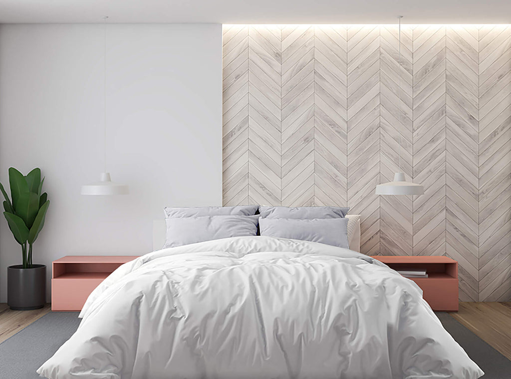 Doppelbettbezug mit Tasche und schlichten weißen Kissenbezügen