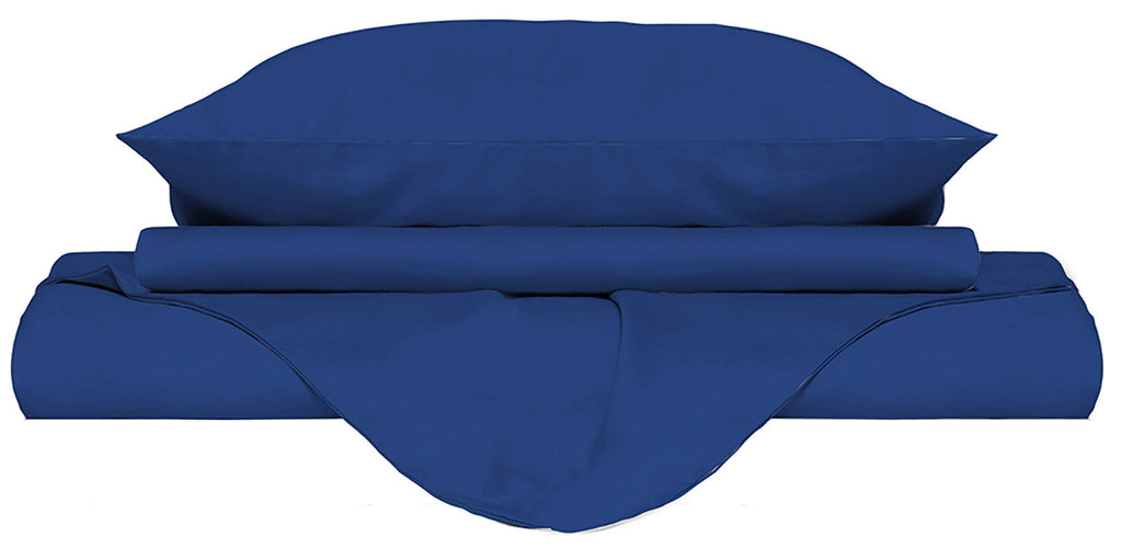 Doppel-Bettbezug mit Tasche und Kissenbezügen, einfarbig Königsblau