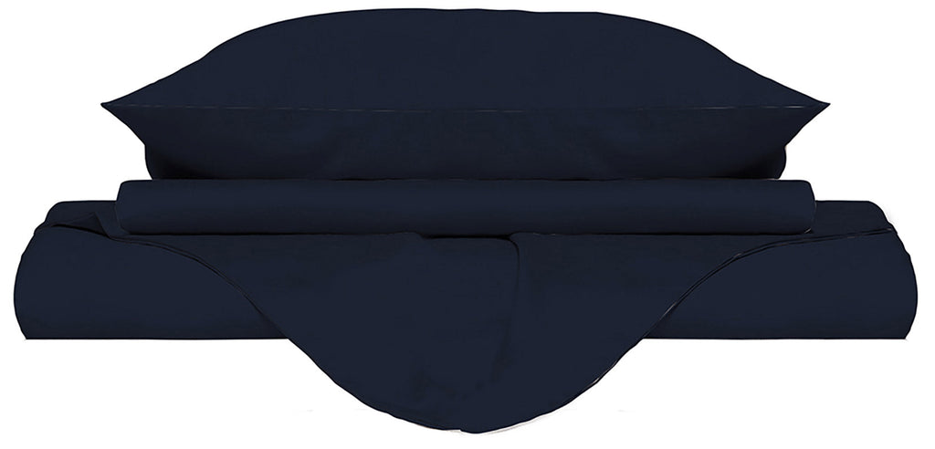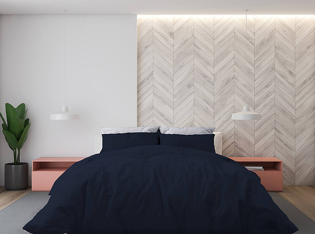Doppel-Bettbezug mit Tasche und Kissenbezügen, einfarbig, dunkelblau
