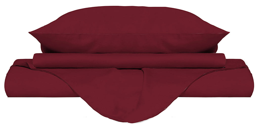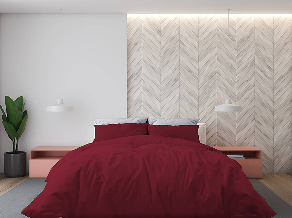 Doppelbettbezug mit Tasche und einfarbigen Kissenbezügen in Bordeaux