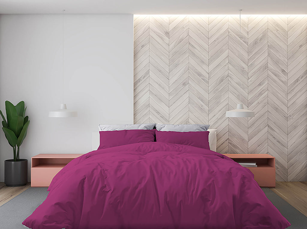 Bettbezug für Doppelbett mit Tasche und einfarbigen Kissenbezügen in Fuchsia