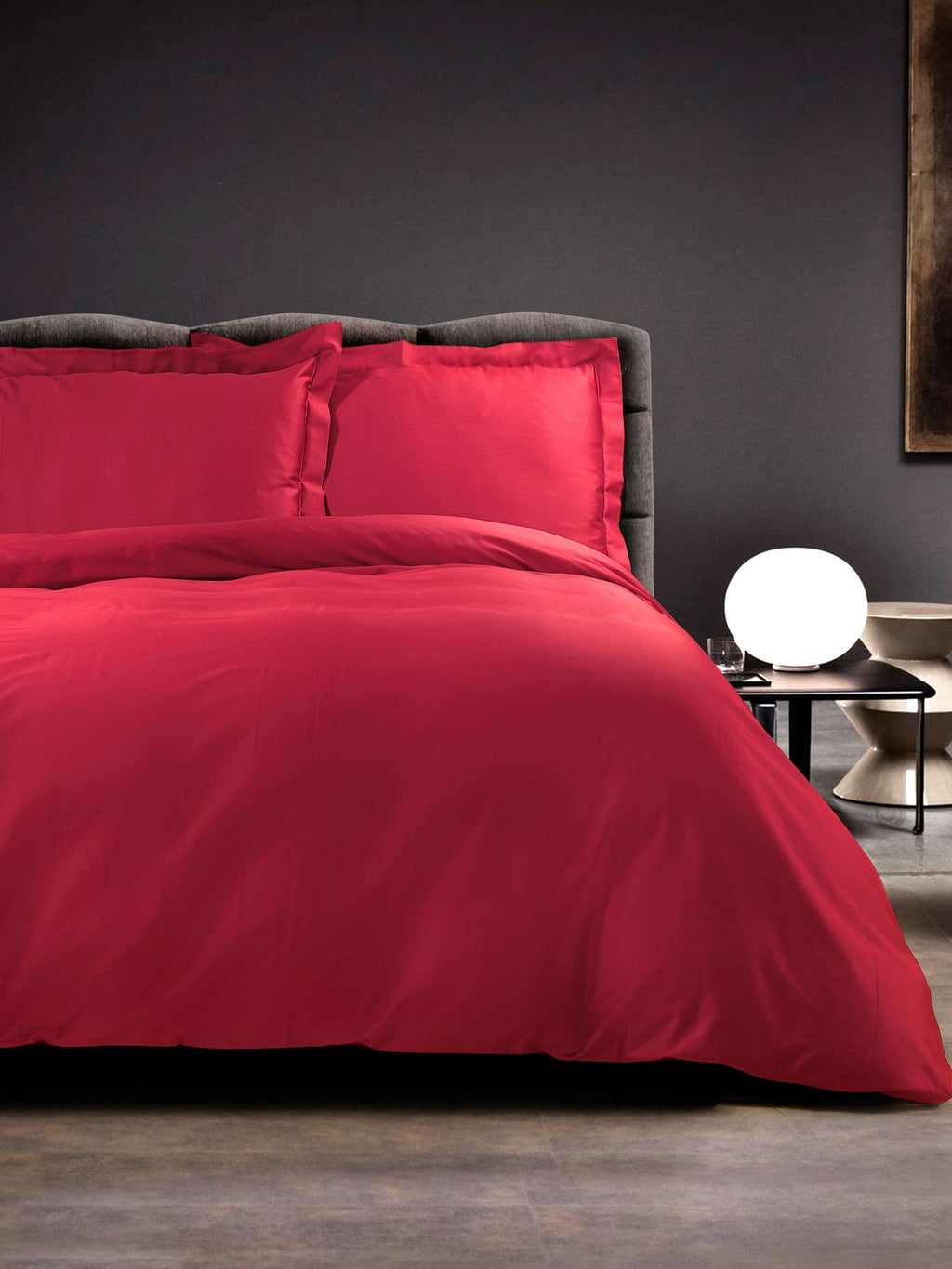 Bettbezug-Set aus reinem Baumwollsatin 300 TC in Uni-Farbe. Lieferumfang: 1 Bettbezug und 2 Kissenbezüge. Ideal für alle, die die Weichheit feiner Satins lieben.