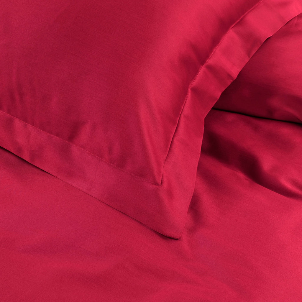 Set aus Doppellaken oben und unten und einfarbigen Garrini Clarice Bordeaux Kissenbezügen