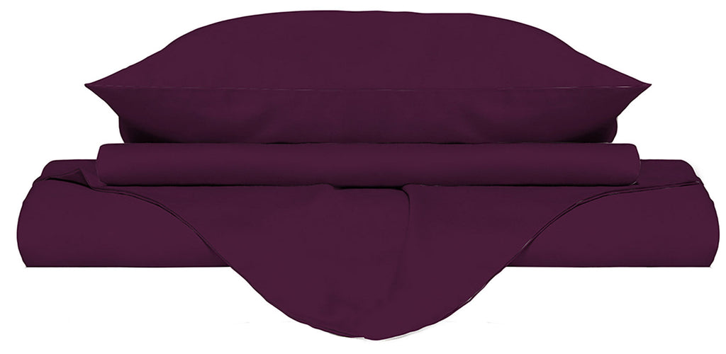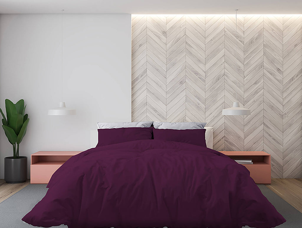 Bettbezug für Doppelbett mit Tasche und einfarbigen Kissenbezügen in Pflaume