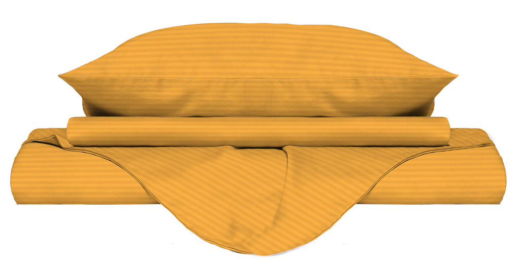 Bettbezug für Doppelbett mit Tasche und Kissenbezügen, einfarbig orange gestreift