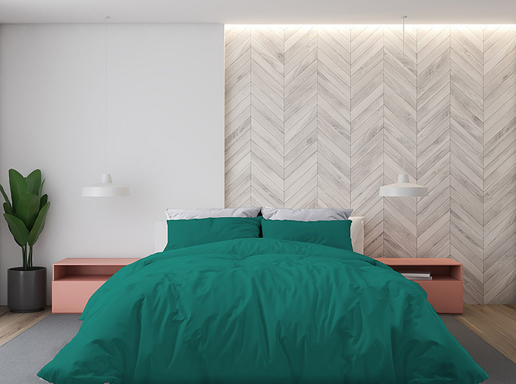 Doppel-Bettbezug mit Tasche und Kissenbezügen, einfarbiges grünes Wasser