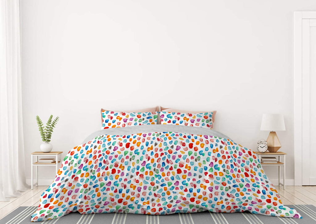 Doppelbettbezug mit Aufdruck auf Tasche und Kissenbezügen