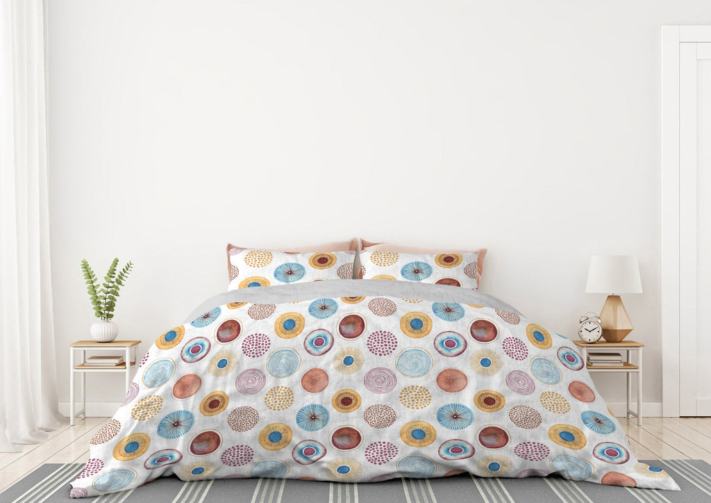 Doppelbettbezug mit Aufdruck auf Tasche und Kissenbezügen