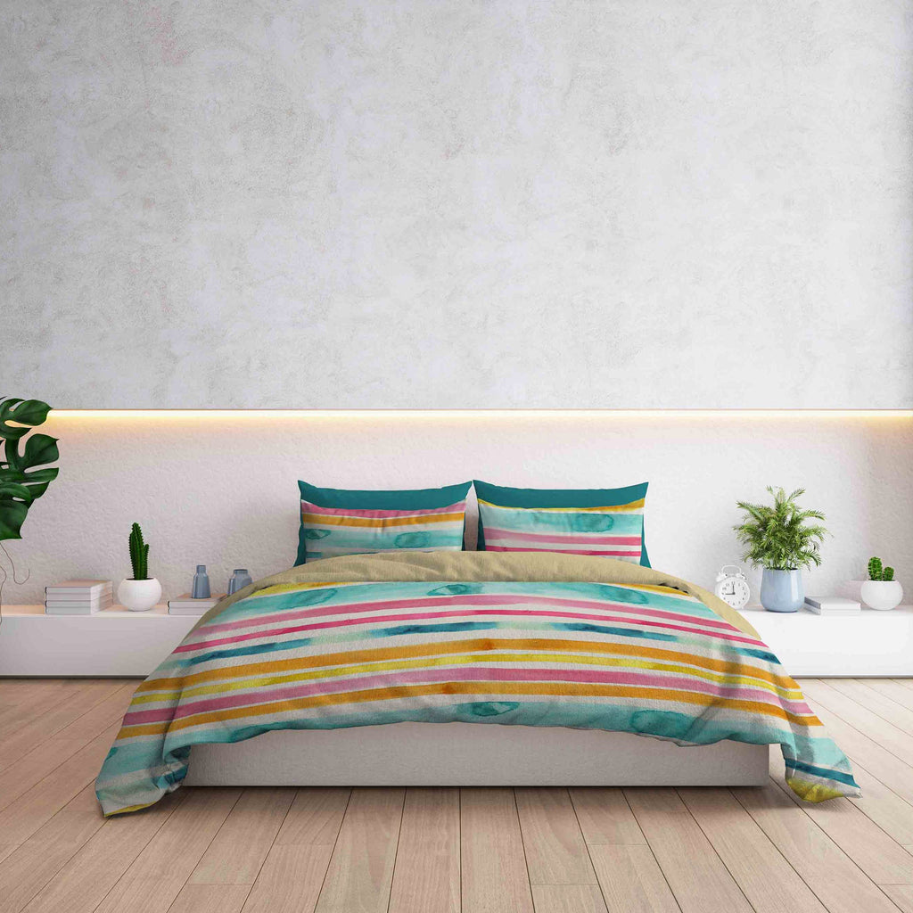 - 1 Queen-Size: Bettbezug 200 x 200 cm + Doppelklappe zum Befestigen unter der Matratze + Kissenbezug 52 x 82 cm + Innenklappe