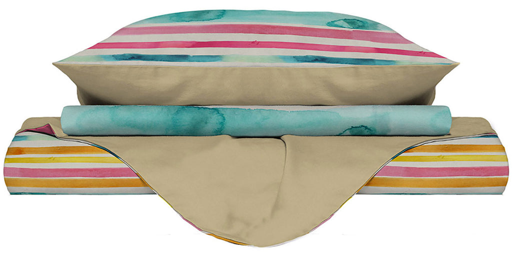 Set aus der Fashion-Linie auf sehr weicher bedruckter Mikrofaser, bestehend aus Bettbezug und Kissenbezügen.