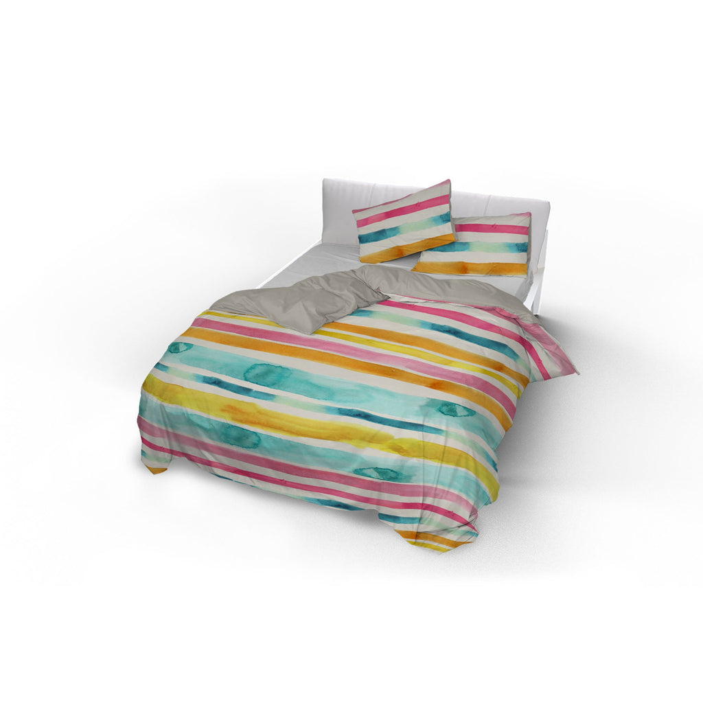 - Doppelbett: Bettbezug 250 x 200 cm + Doppellasche zum Befestigen unter der Matratze + 2 Kissenbezüge 52 x 82 cm + Innenlasche