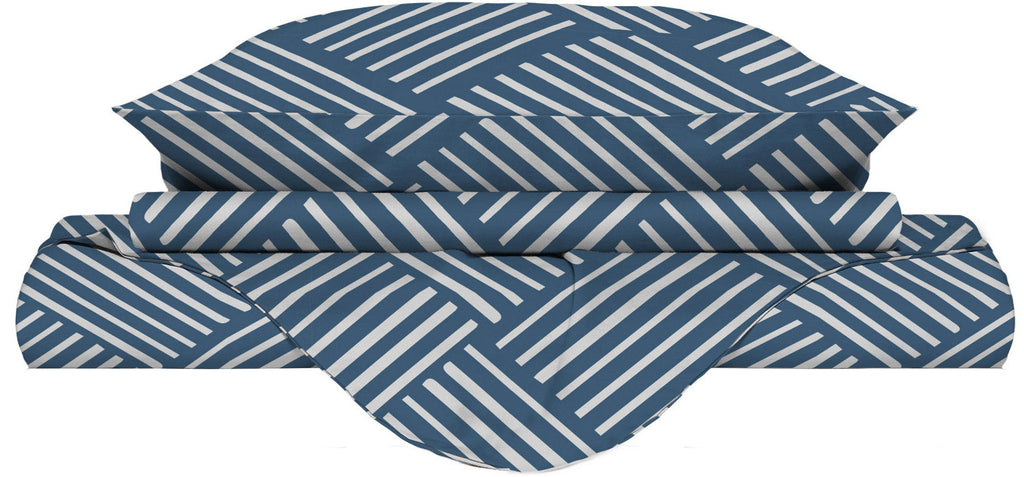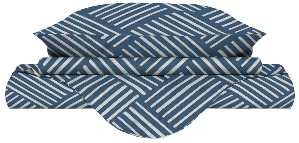 Bettbezug mit Kissenbezügen, bedruckt in City Life Blau, Mikrofaser, verschiedene Größen