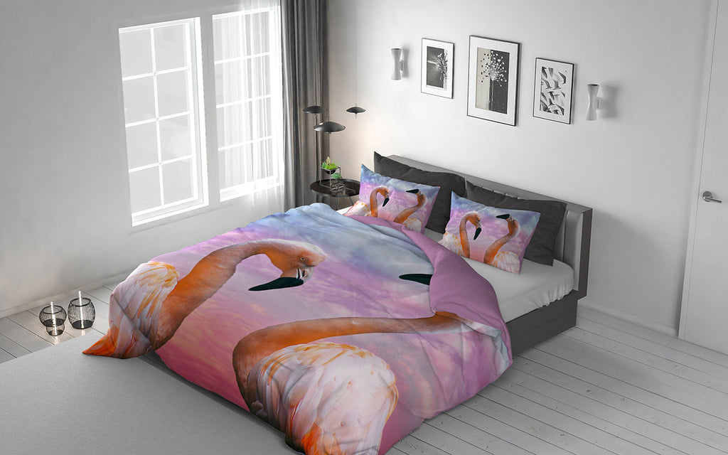 Bettbezug mit Kissenbezügen aus Mikrofaser-Flamingo in verschiedenen Größen