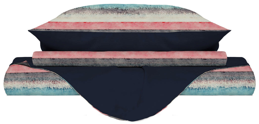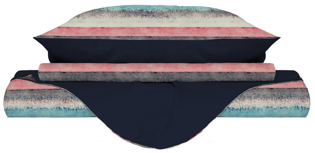Bettbezug-Set aus bedruckter Mikrofaser. Produkt mit Bettbezug und Kissenbezügen mit Oeko-Tex-Zertifizierung, die den Respekt vor der Natur und die vollständige Abwesenheit von Schadstoffen während des gesamten Produktionsprozesses garantiert. Artikel Hergestellt in Italien.