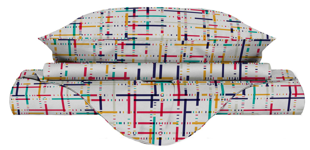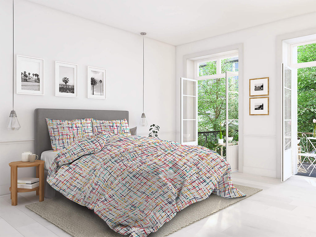 - Doppelbett: Bettbezug 250 x 200 cm + Doppellasche zum Befestigen unter der Matratze + 2 Kissenbezüge 52 x 82 cm + Innenlasche