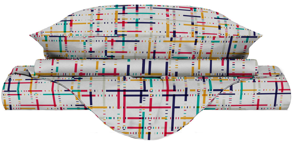 - Einzelbett: Bettbezug 150 x 200 cm + Doppellasche zum Befestigen unter der Matratze + Kissenbezug 52 x 82 cm + Innenlasche
