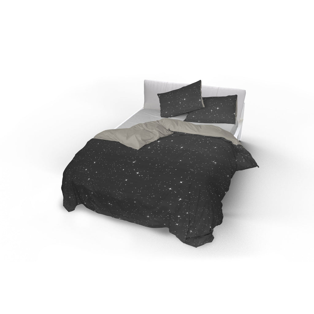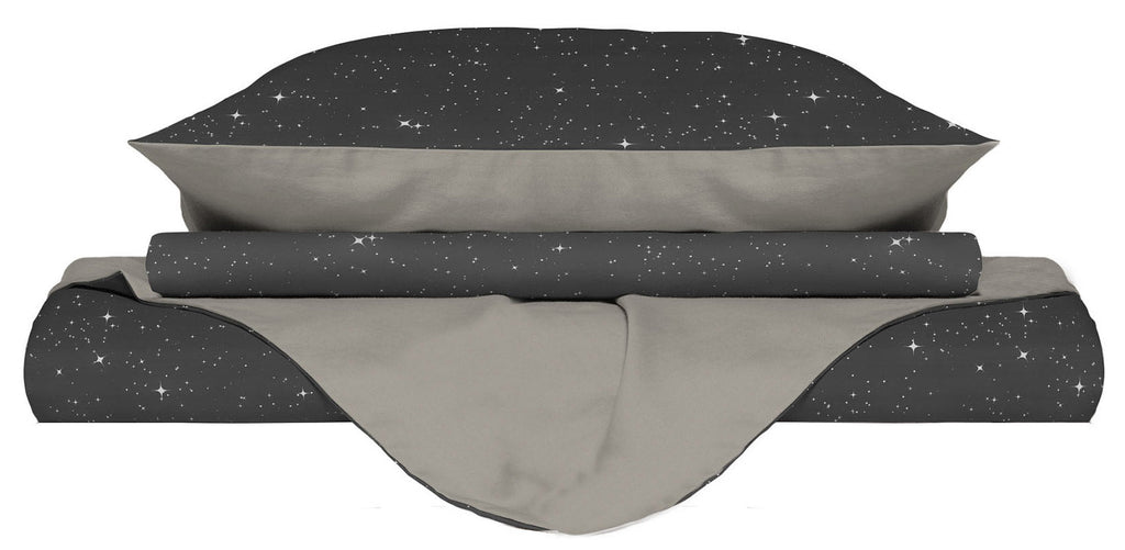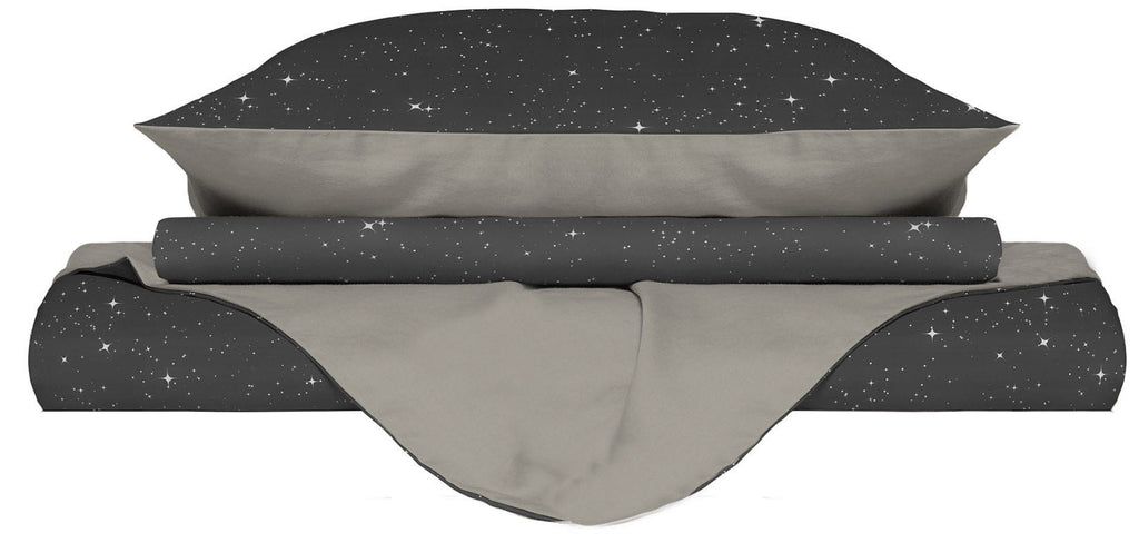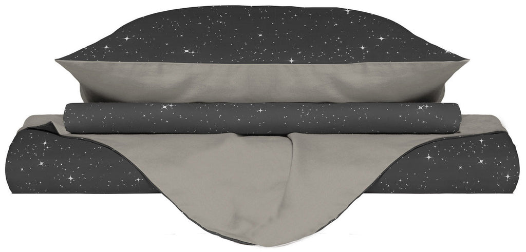 Bettbezug mit Kissenbezügen, bedruckt mit grauen Sternen aus Mikrofaser
