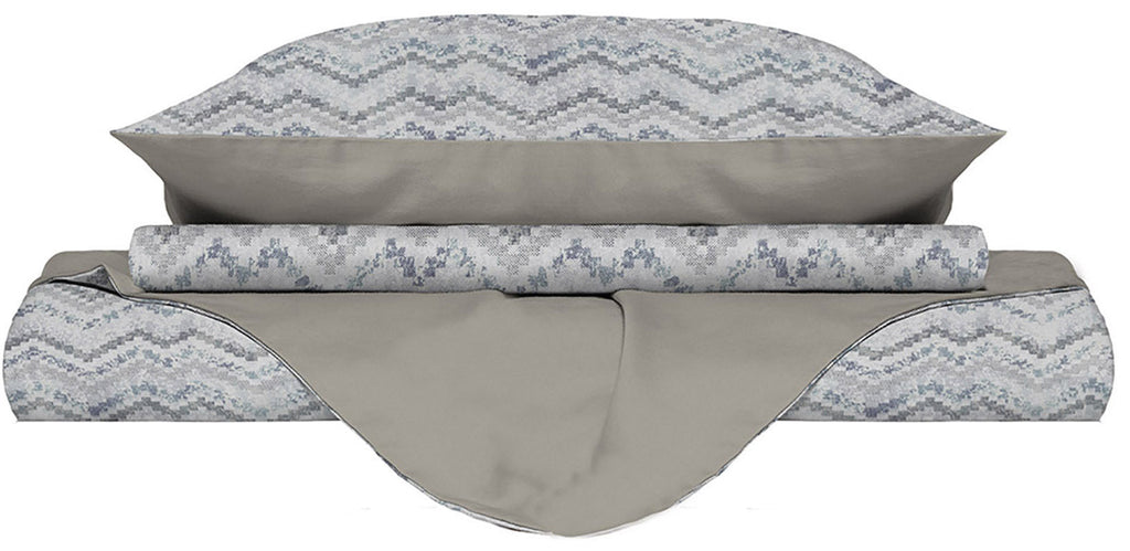 Set aus der Fashion-Linie auf sehr weicher bedruckter Mikrofaser, bestehend aus Bettbezug und Kissenbezügen.