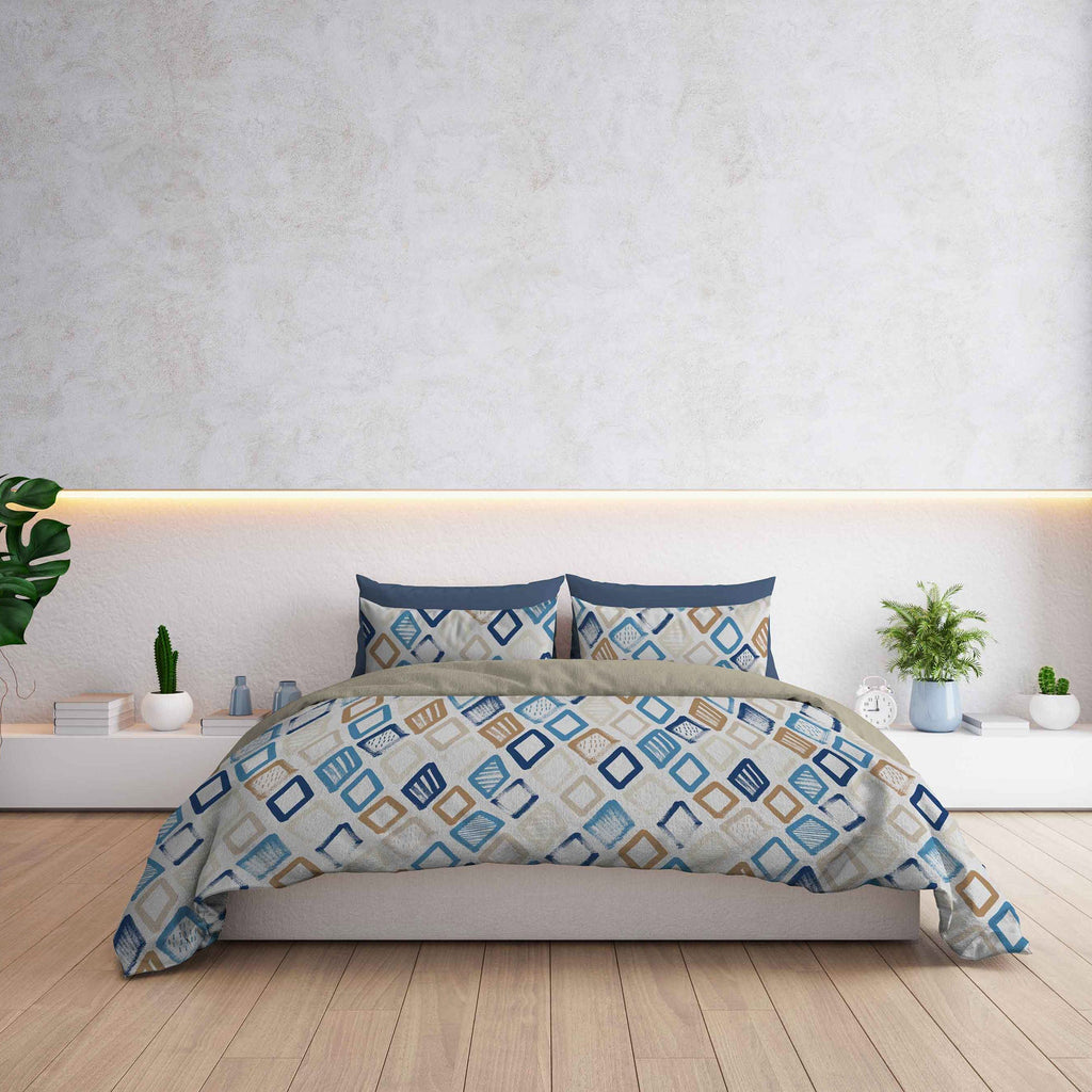 - 1 Queen-Size: Bettbezug 200 x 200 cm + Doppellasche zur Befestigung unter der Matratze + Kissenbezug 52 x 82 cm + Innenlasche