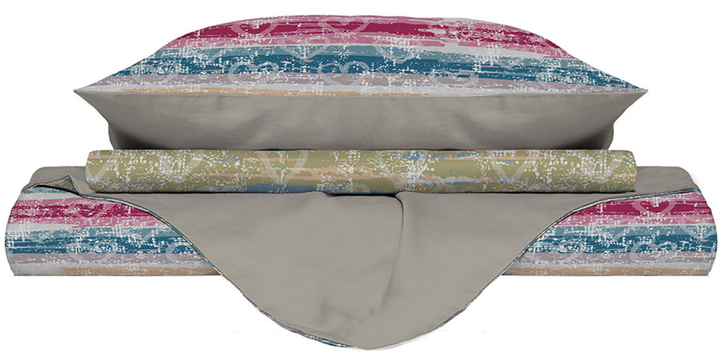 Set aus der Fashion-Linie auf sehr weicher bedruckter Mikrofaser, bestehend aus Bettbezug und Kissenbezügen.