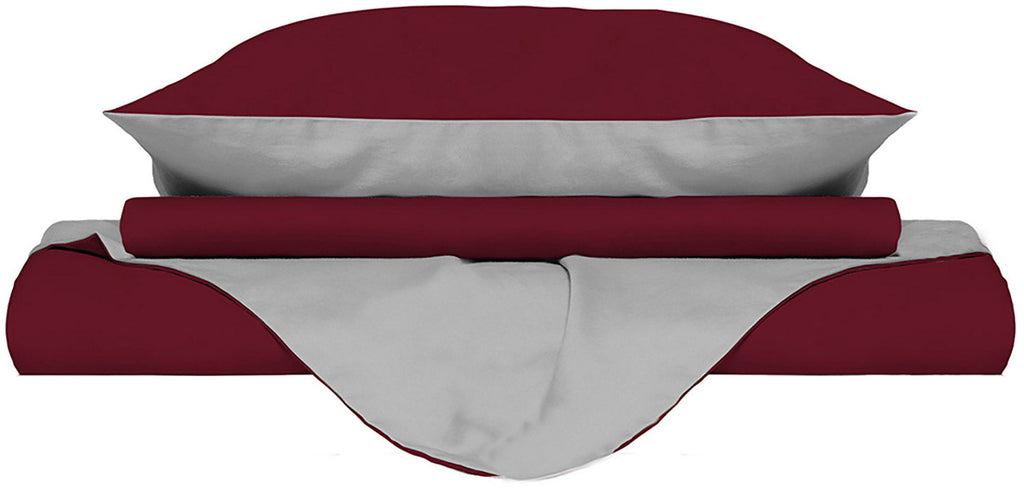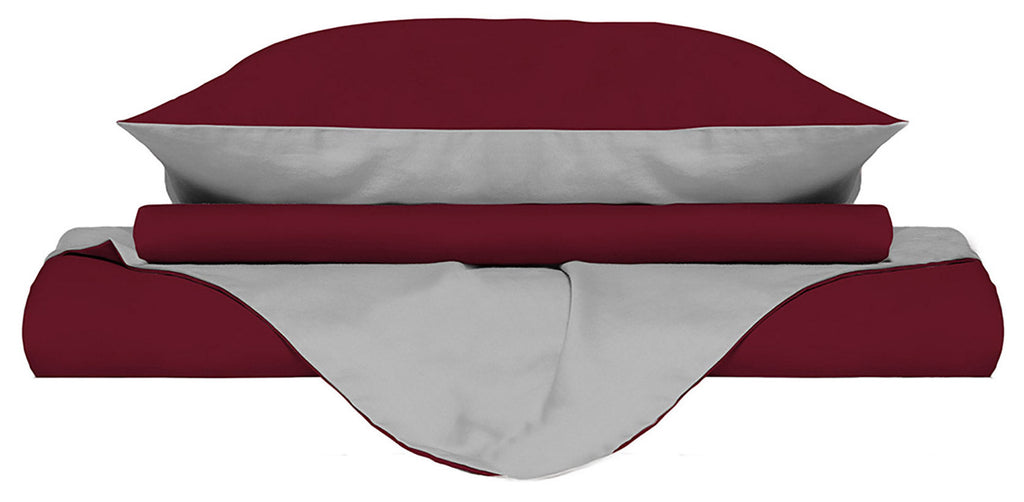 Bettbezug mit Tasche und Kissenbezügen Doubleface Bordeaux/Hellgrau Verschiedene Größen