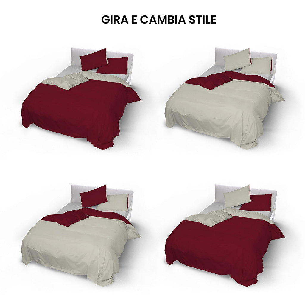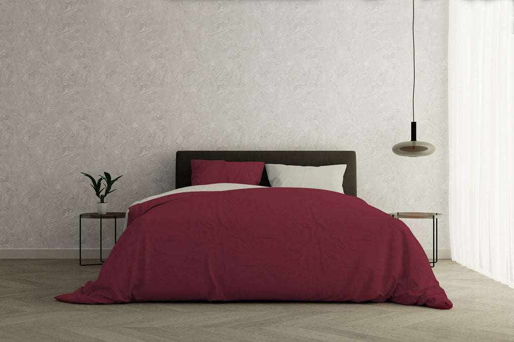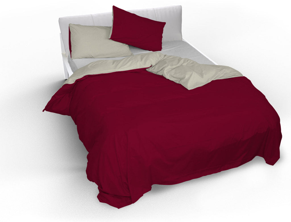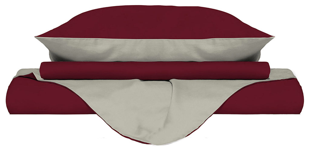 Doubleface-Bettbezug in Bordeaux/Creme mit Tasche und Kissenbezügen