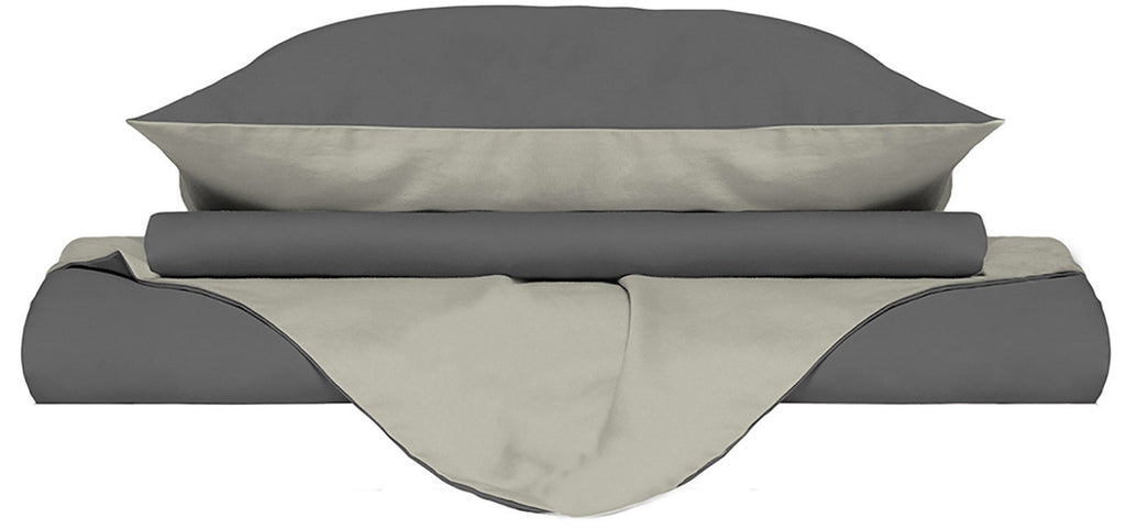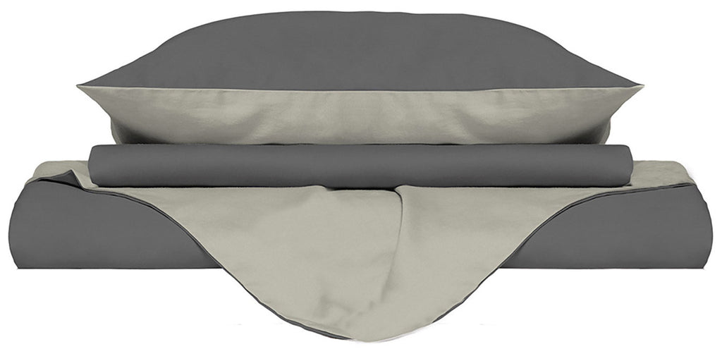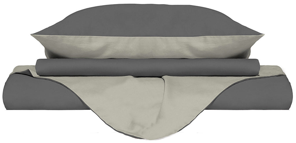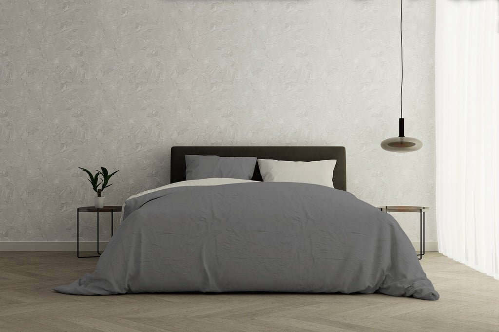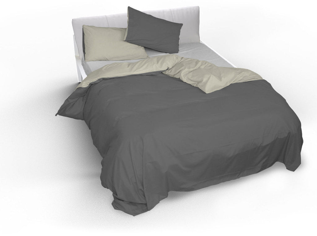 Bettbezug mit Tasche und doppelseitigen Kissenbezügen Smoke / Cream