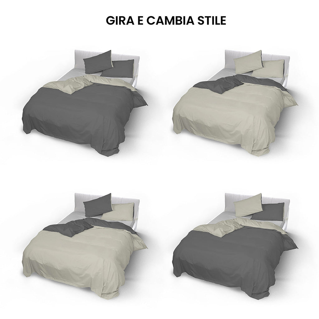 Bettbezug- Set bestehend aus Bettbezug und wendbaren Kissenbezügen . Dieser einfarbige , wendbare Bettbezug aus Baumwolle wurde vollständig in Italien entworfen, montiert und genäht und ist aus Baumwolle mit präzisen Oberflächen und einer Oberfläche, die das Bügeln erleichtert. All diese Eigenschaften machen diese Bettbezüge aufgrund ihrer Eleganz und Schlichtheit zu begehrten Produkten. Die Farben wurden getestet, um langem Waschen zu widerstehen, während die Farben leuchtend bleiben.