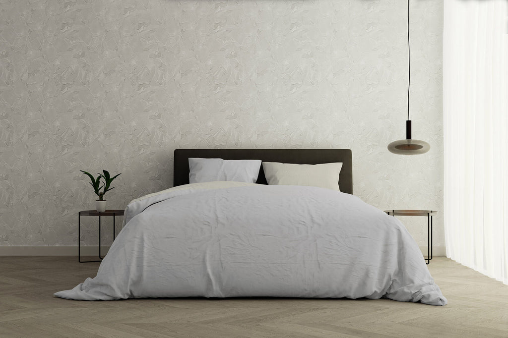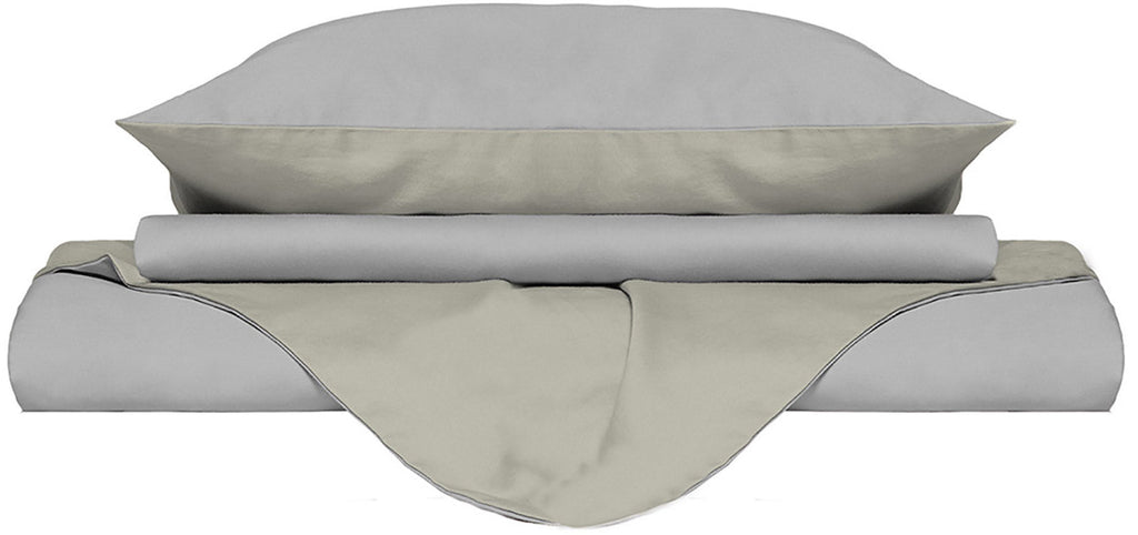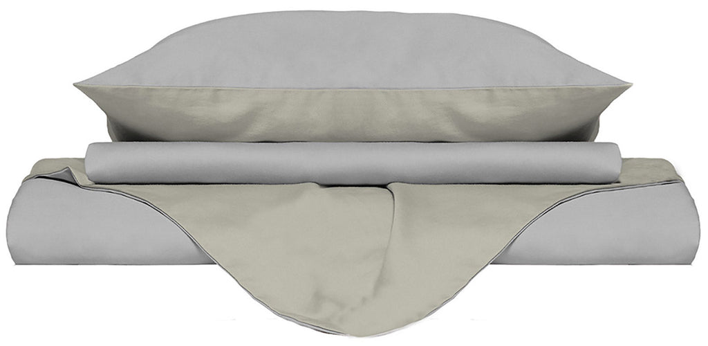Bettbezug mit Tasche und Kissenbezügen, wendbar, Hellgrau/Creme