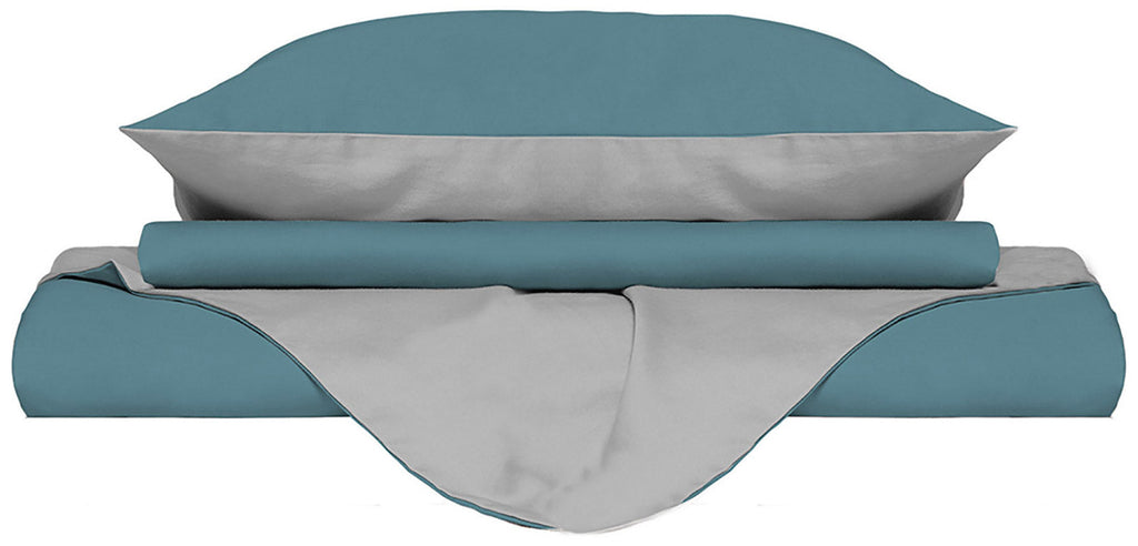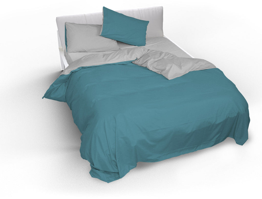 Bettbezug mit Tasche und doppelseitigen Kissenbezügen Teal/Light Grey