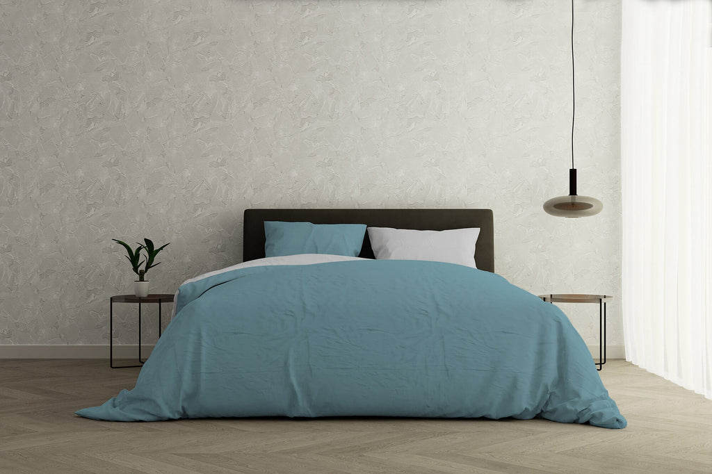 Einzelbettbezug mit Tasche und Kissenbezügen, einfarbig, doppelseitig, Blaugrün/Hellgrau