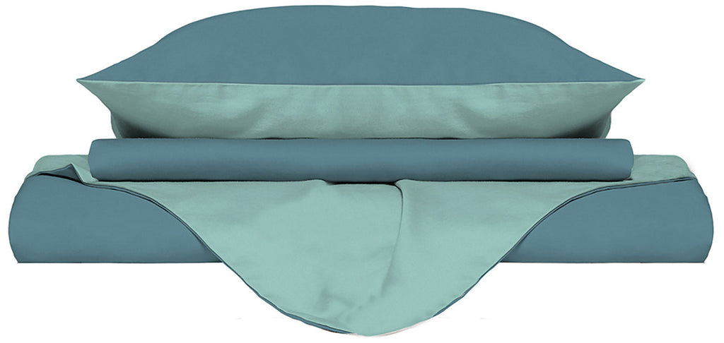 Bettbezug mit Tasche und wendbaren Kissenbezügen in Blaugrün/Knickentengrün