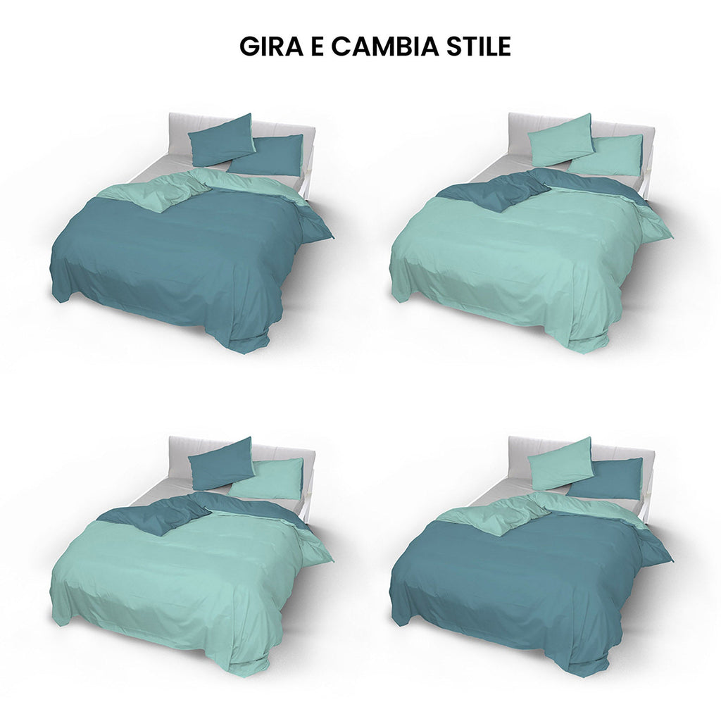 Bettbezug- Set bestehend aus Bettbezug und wendbaren Kissenbezügen . Dieser einfarbige , wendbare Bettbezug aus Baumwolle wurde vollständig in Italien entworfen, montiert und genäht und ist aus Baumwolle mit präzisen Oberflächen und einer Oberfläche, die das Bügeln erleichtert. All diese Eigenschaften machen diese Bettbezüge aufgrund ihrer Eleganz und Schlichtheit zu begehrten Produkten. Die Farben wurden getestet, um langem Waschen zu widerstehen, während die Farben leuchtend bleiben.
