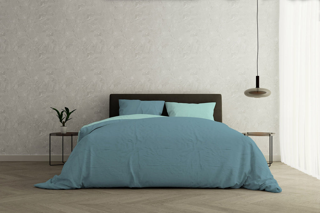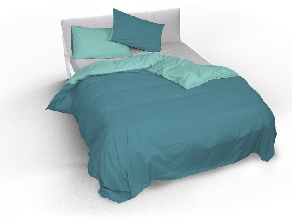 Bettbezug für Einzelbett mit Tasche und Kissenbezügen, einfarbig, doppelseitig, blaugrün/blaugrün