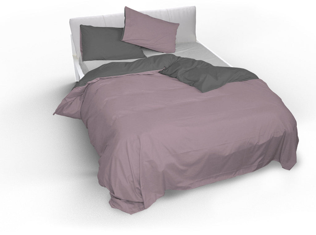 Bettbezug mit Tasche und doppelseitigen Kissenbezügen Antikrosa / Rauch