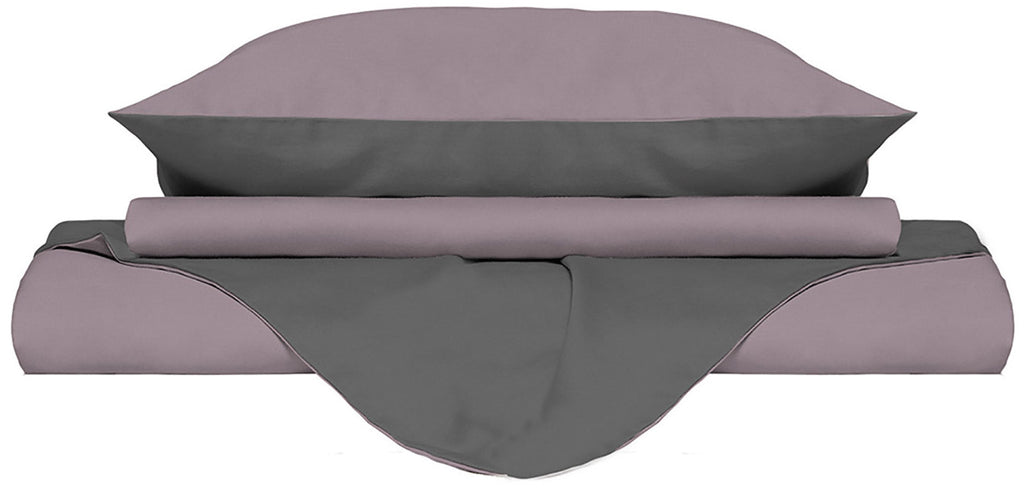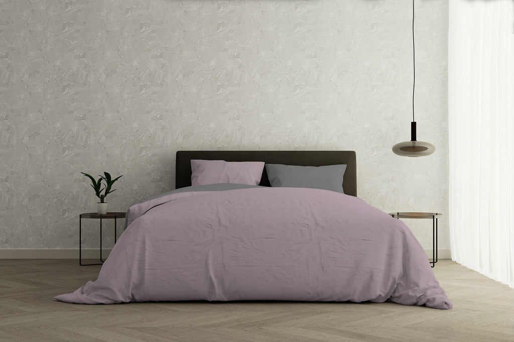 Bettbezug mit Tasche und Kissenbezügen, Doubleface, Antikrosa/Rauch, verschiedene Größen