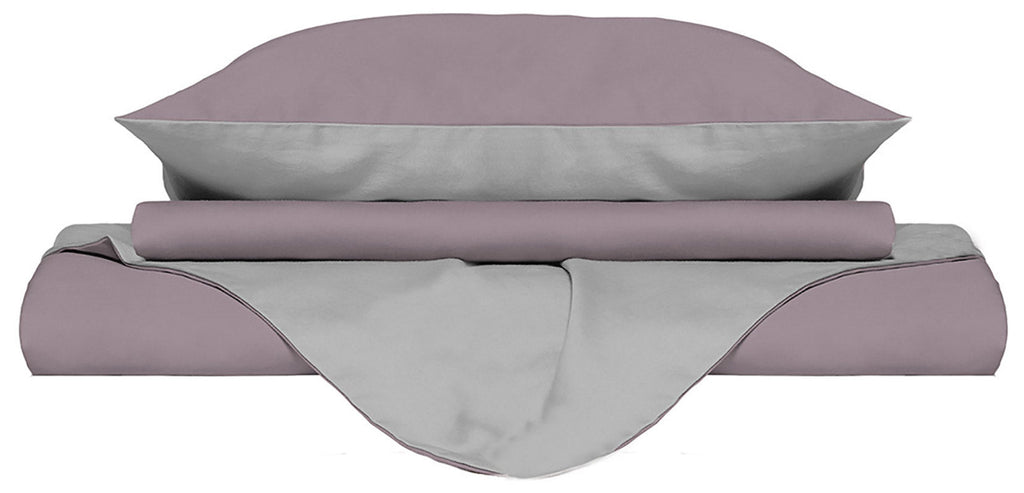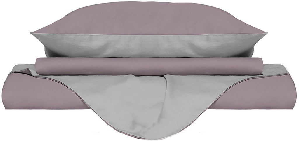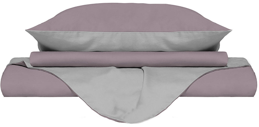 Bettbezug mit Tasche und doppelseitigen Kissenbezügen Antikrosa/Hellgrau