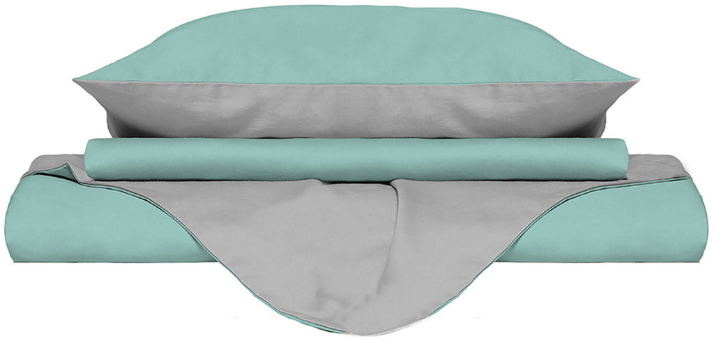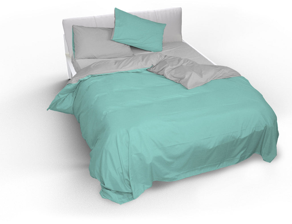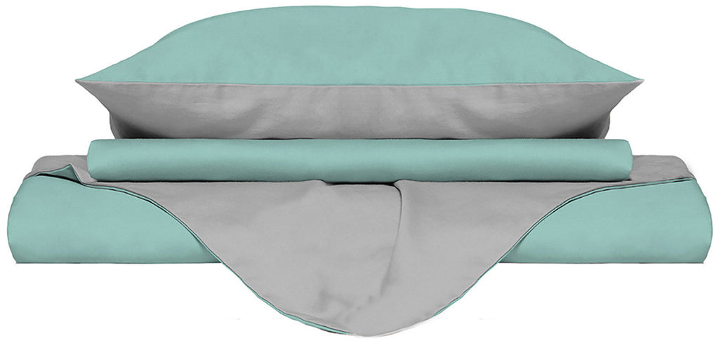 Bettbezug mit Tasche und wendbaren Kissenbezügen Aqua Green/Light Grey